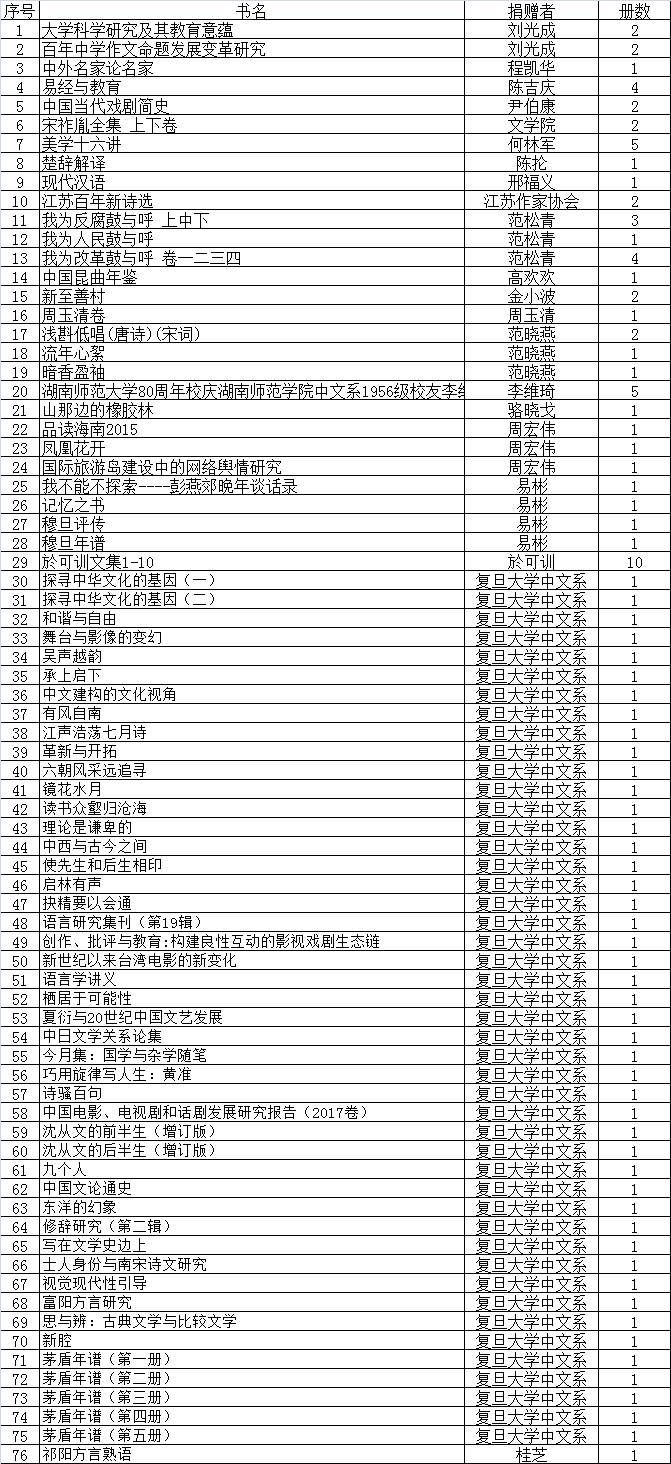 捐赠书目(2018年)