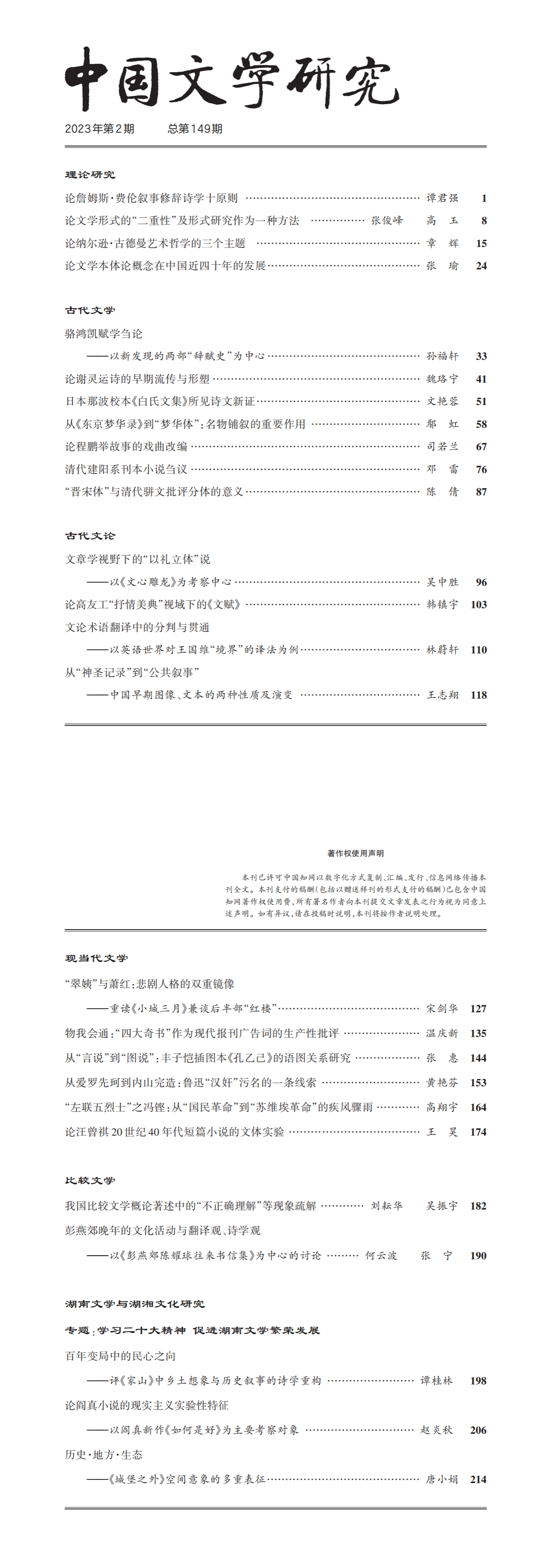 《中国文学研究》2023年第2期总第149期