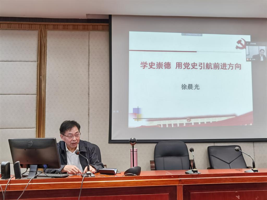 认真听取徐晨光教授“学史崇德,用党史引航前进方向”辅导报告