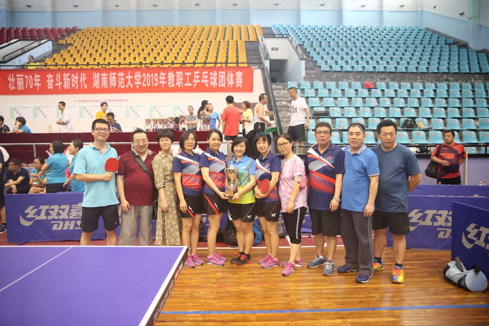 (通讯员 王婧之)6月14日至15日,2019年度william威廉亚洲职工乒乓球团体赛在校体育馆举行。公司乒乓球运动队12名队员经过两天奋力拼搏,取得了团体赛第七名的好成绩。公司党委书记李伶俐、院工会主席徐朝红、赵树勤等老师到场为运动健儿鼓劲加油。