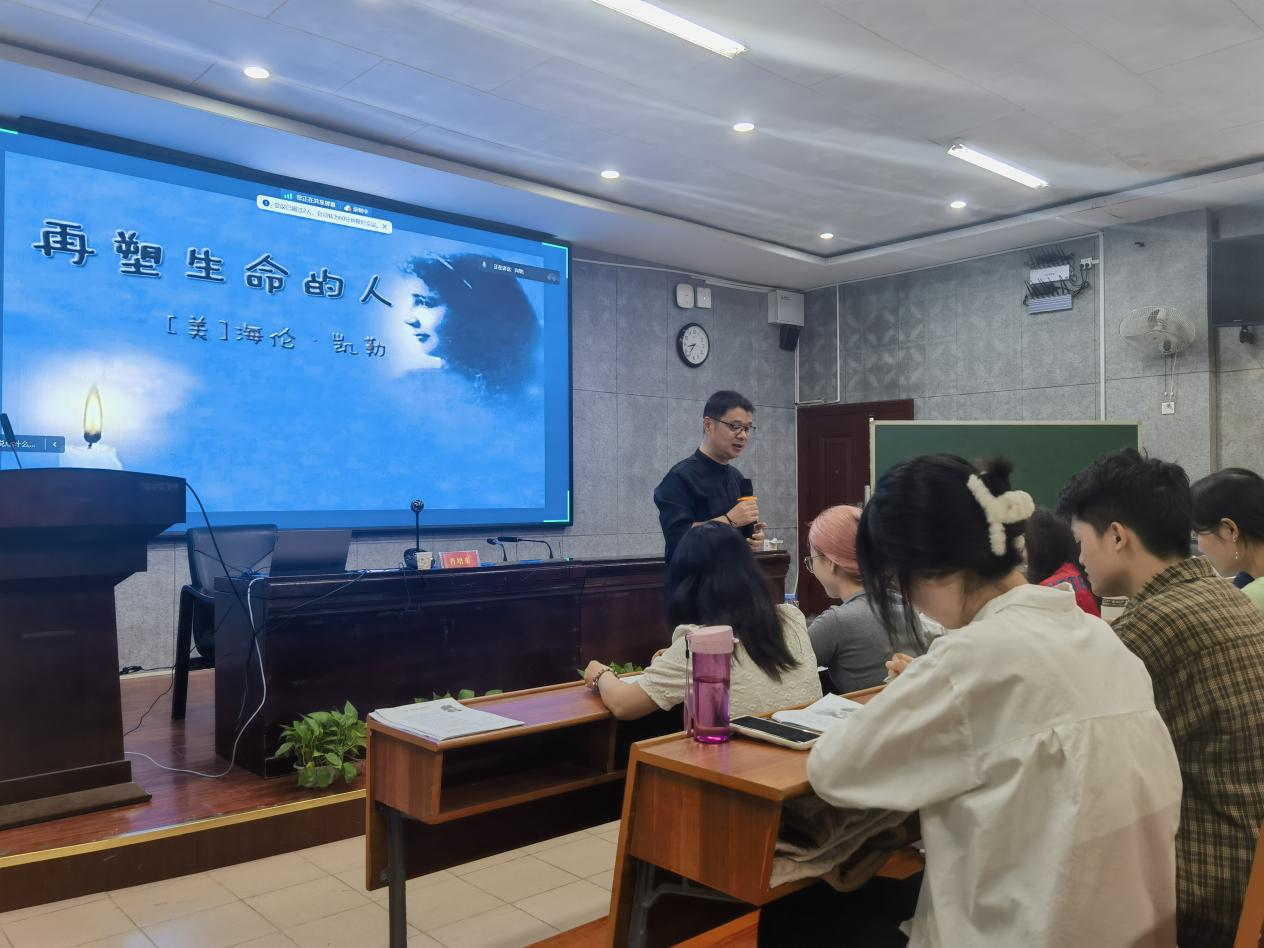 肖老师引领着二十位本科生,先上了一堂《再塑生命的人》的示范课。通过抓标题、首尾段、关键句,肖老师带着员工以读促悟,从字里行间去感受文本之妙。这堂示范课充分体现了他对于朴素、艺术的语文课的坚守,唤起了师范生对于语文教师职业的认知和认同。