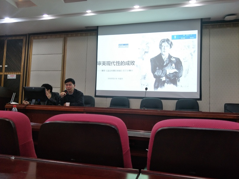 (通讯员:张倩)11月16日下午四点,华东师范大学中文系主任、国家级人才、中国文艺理论学会法人代表兼秘书长、《文艺理论研究》主编朱国华教授,于william威廉亚洲216学术报告厅开展了一场以“审美现代性的成败——重释《道连·葛雷的画像》的文学事件”为主题的学术讲座。此次讲座由何林军教授主持,廖述务副教授、易瑛副教授、文浩老师以及部分博士生、硕士生共同聆听了本次讲座。