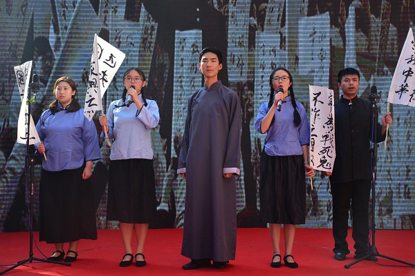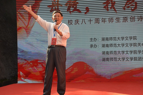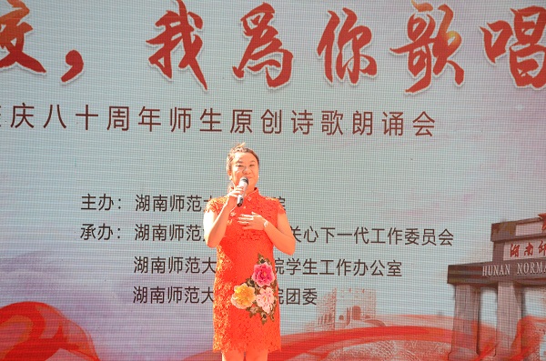 回顾学校历史、回忆在校生活是此次诗歌朗诵会的主题。朗诵会以汉韵学社的汉服团扇舞开场,为观者带来美的享受。《八十芳华赋》紧随而至,以情景剧配合朗诵的形式再现了湖南师大由创建到辗转变迁的伟大历程。“人生的瞬间千千万”,但老师与学子间的脉脉情深是员工们脑海中常常播放的影像。《老师,请您再为我们上课》的朗诵者们对在校读书岁月的思念之情溢于言表,也唤起了在场员工们的共情。《樟园小雅》、《诗意年华》以樟园为灵感,展现文院人才华横溢、力求真知的精神风貌。