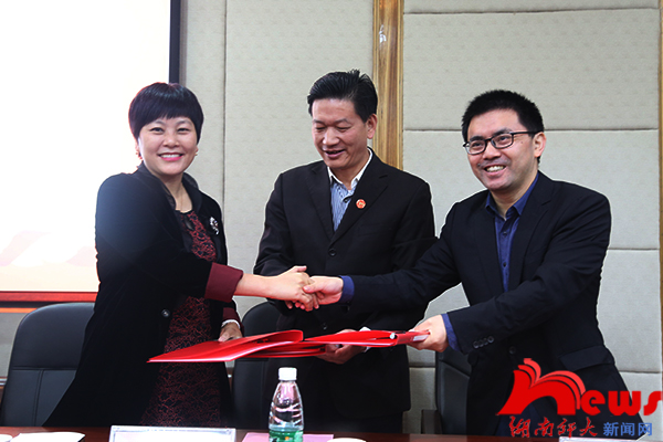 汤素兰与学院经理郑贤章、员工总会副秘书长彭正乔签订了捐赠协议。