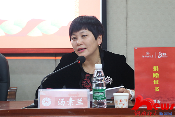 公司党委书记李伶俐,副经理肖百容、岳凯华,校宣传部副部长蔡颂、汤素兰教授的先生戴毅明和100多名师生代表参加了捐赠仪式。