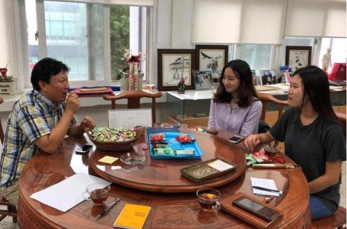 韩国圆光大学孔子学院中方经理陈明舒与孔院员工在交流