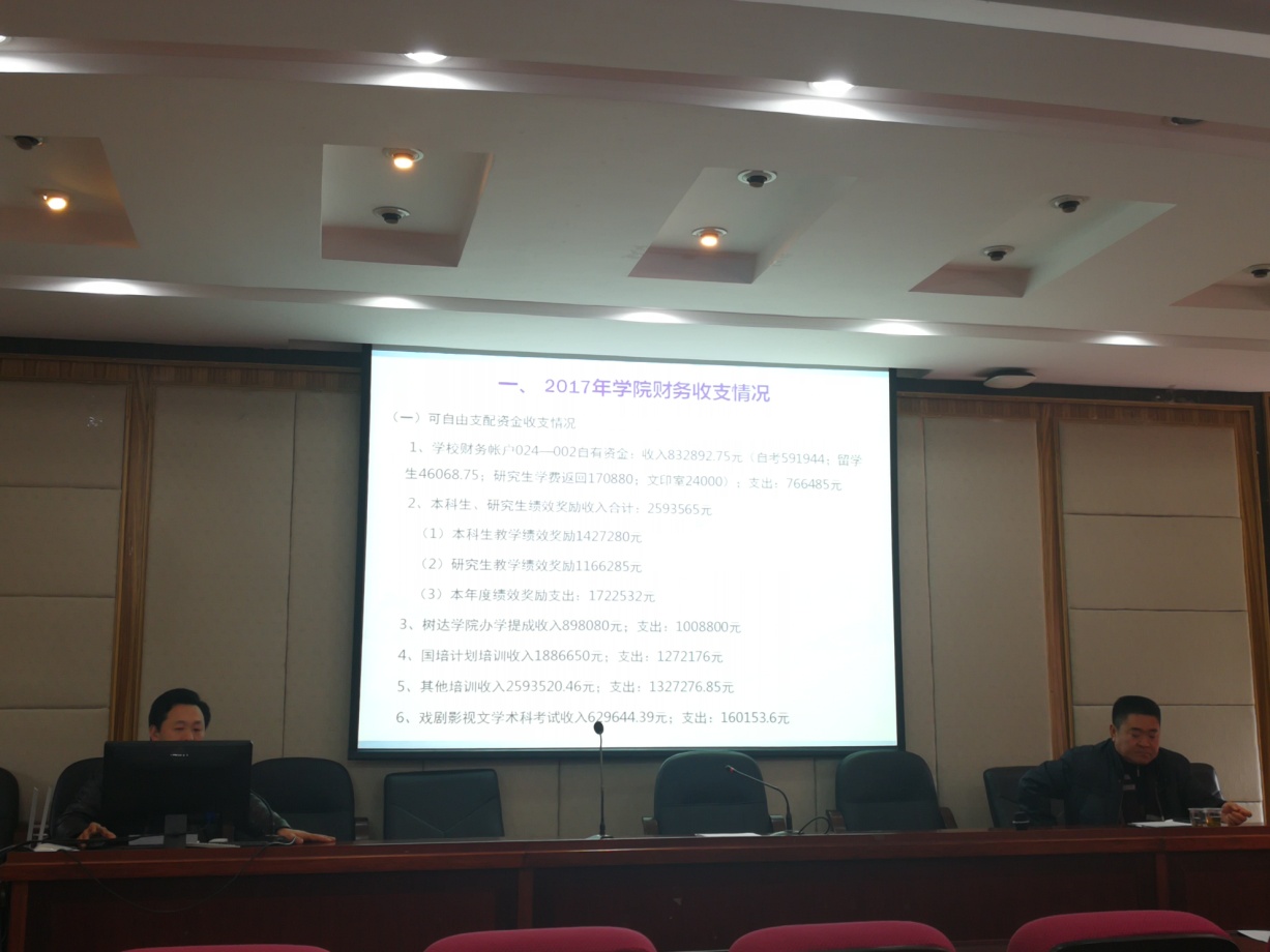 2018年元月18日下午,学院在216报告厅召开了全体教职工大会,大会由公司党委书记李伶俐主持。