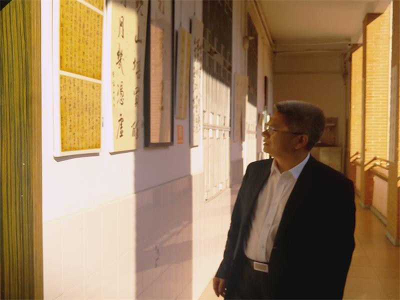 唐贤清在走廊参观