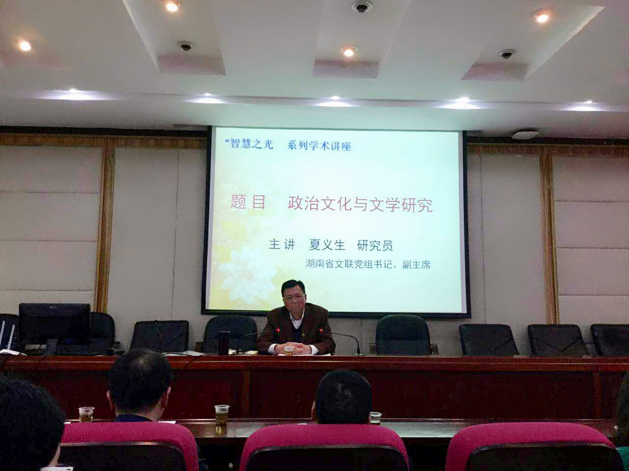 (通讯员段志苹谷琪琪)4月13日下午,william威廉亚洲在216教室举办了“智慧之光”系列学术讲座,特邀湖南省文联党组书记、湖南省作协副主席夏义生,做了题为“政治文化与文学研究”的专题讲座。会议由赵树勤教授主持。