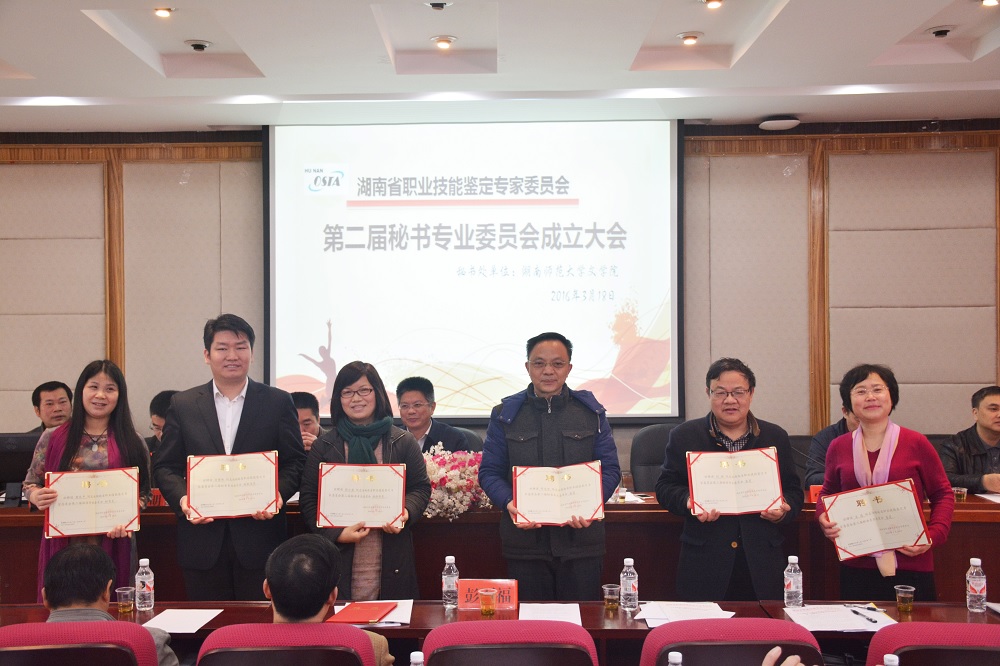 宁泽民宣读《关于调整成立湖南省职业技能鉴定专家委员会第二届秘书专业委员会的通知》和委员名单,岳凯华任第二届秘书委员会主任,李中标等5人任副主任,黄乐平任秘书长,邓石华等10人任专家委员。