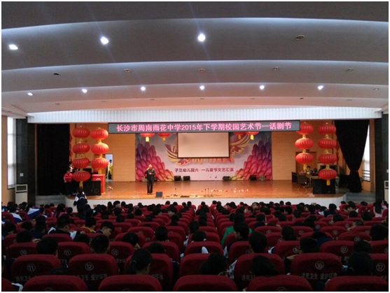 在雨花区艺体科技中心的全面指导下,在学校何亚松董事长和话剧社社长戚一明、许靓两位老师的精心组织和策划下,周南雨花中学首届话剧节的决赛展示环节在学校的五楼剧场隆重举行。由孩子们自编自导自演的话剧《互换角色》、《科举制度》、《白雪公主与三个矮人》、《大话西游》、《都是上网惹的祸》、《如此家长》和《刘老师家访》等话剧小品,博得了在场观众的阵阵掌声与笑声。孩子们精湛的演技和完美的表现,全面彰显了他们的创造力、表现力、合作能力,这些角色的诠释仿佛是孩子们在用另外一种方式诉说着自己的心声。