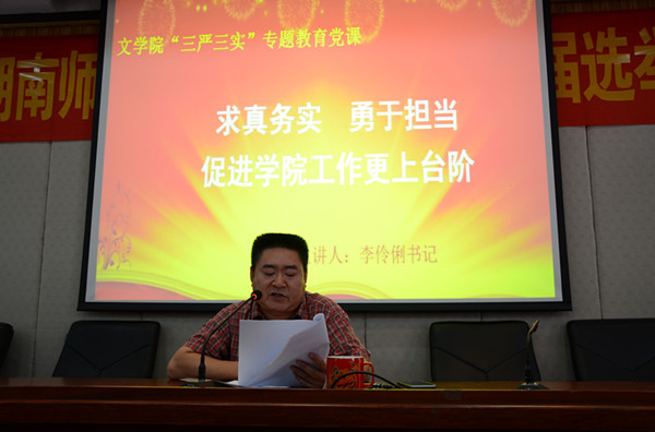 公司党委书记李伶俐以《求真务实,勇于担当,促进学院工作更上台阶》为题,从准确把握“三严三实”的深刻内涵和精神实质,深刻领会和认识开展“三严三实”专题教育的重大意义,认真查找“不严不实”的现实表现,立行立改,自觉践行“三严三实”,促进学院工作更上台阶等四个方面展开。李伶俐要求公司党员干部切实做好专题教育有关工作,力争教育出效果,工作出成绩,学院上台阶。