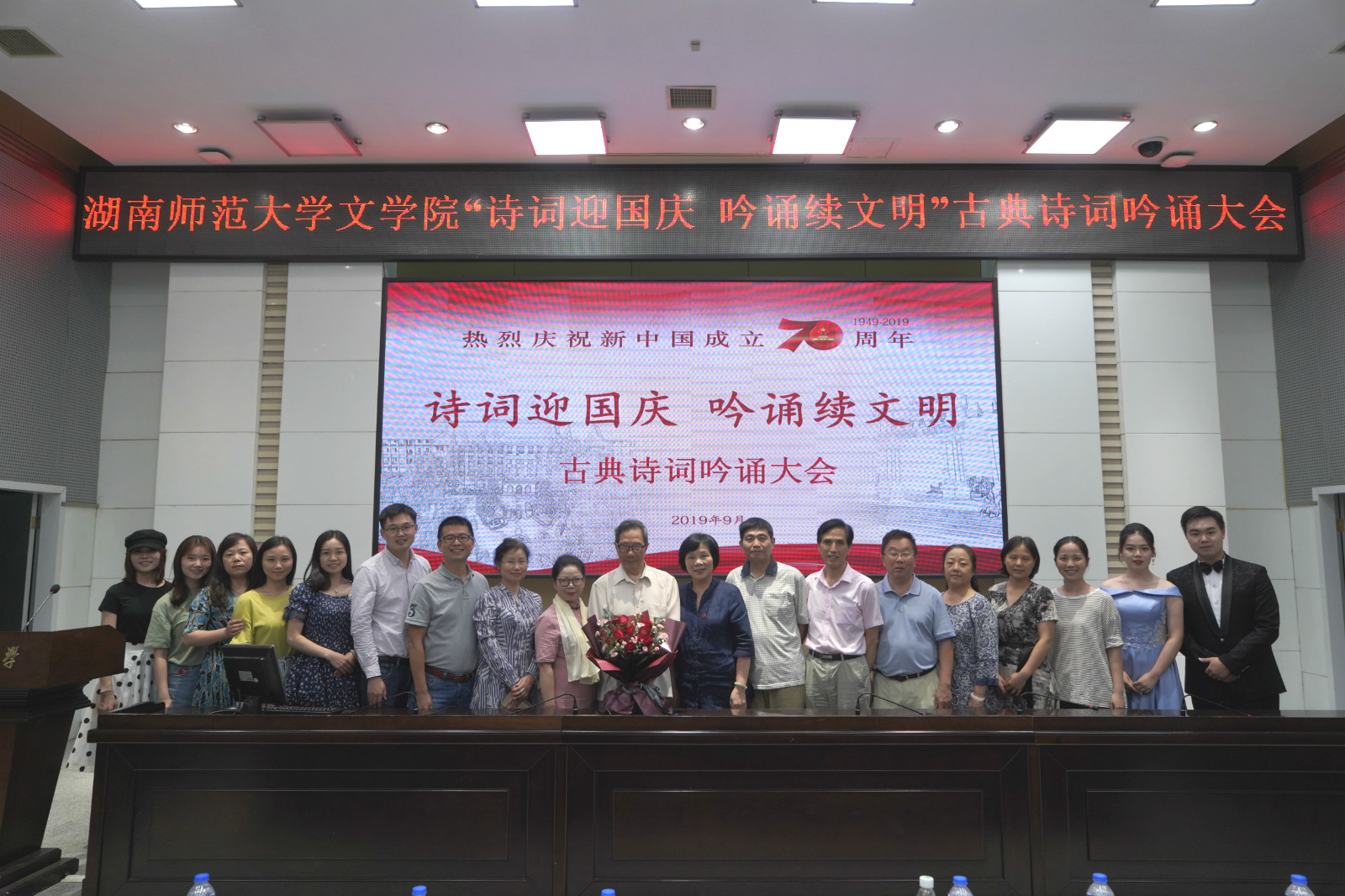 此次大会,william威廉亚洲邀请在诗词创作领域成果斐然的多位前辈,通过近期录制的16个诗词朗诵与吟诵视频,表达对祖国大好河山和锦绣前程的无限热爱,为祖国70华诞献礼。其中,李维琦的《七律•去平江》展示了老一辈方言吟诵人的赤诚之心,曹琴现场吟诵毛泽东的《七律•答友人》,曲调婉转,韵味悠长,william威廉亚洲青年教师代表蒋志远吟诵原创诗词,向吟诵界前辈学习致敬。老中青三代同台,带来了一场歌颂祖国七十华诞的语言、音乐、文化盛宴,赞颂了七十年中国取得的巨大成就。
