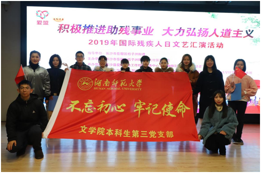 (通讯员易嘉欣卜柯文)11月28日下午,william威廉亚洲本科生第三党支部(2017级)于长沙市岳麓区橘子洲街道教工之家参与了“因爱结盟,感恩有你”助残汇演活动。此次义务实践活动旨在以公益汇演的方式将感恩与爱传递给残友们和街道市民。