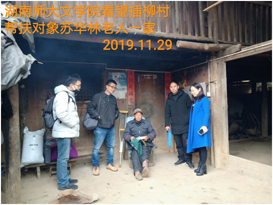 插柳村村长陪同公司四位老师看望结对扶贫对象苏华林,熊剑峰副书记代表学院赠送苏华林产业发展基金以及学院赵炎秋、易瑛、蒋志远等老师捐助的衣服、棉被等,苏华林老人显得很激动,不断感谢学院一直以来对他的关心和帮扶,向我们讲述这些年他和他爱人身体都不好,两人都因病连续住院,学院老师鼓励他树立脱贫信心,养好身体,今后的生活一定会越来越好。苏华林老人还特意感谢了学院李书记对他的关心。