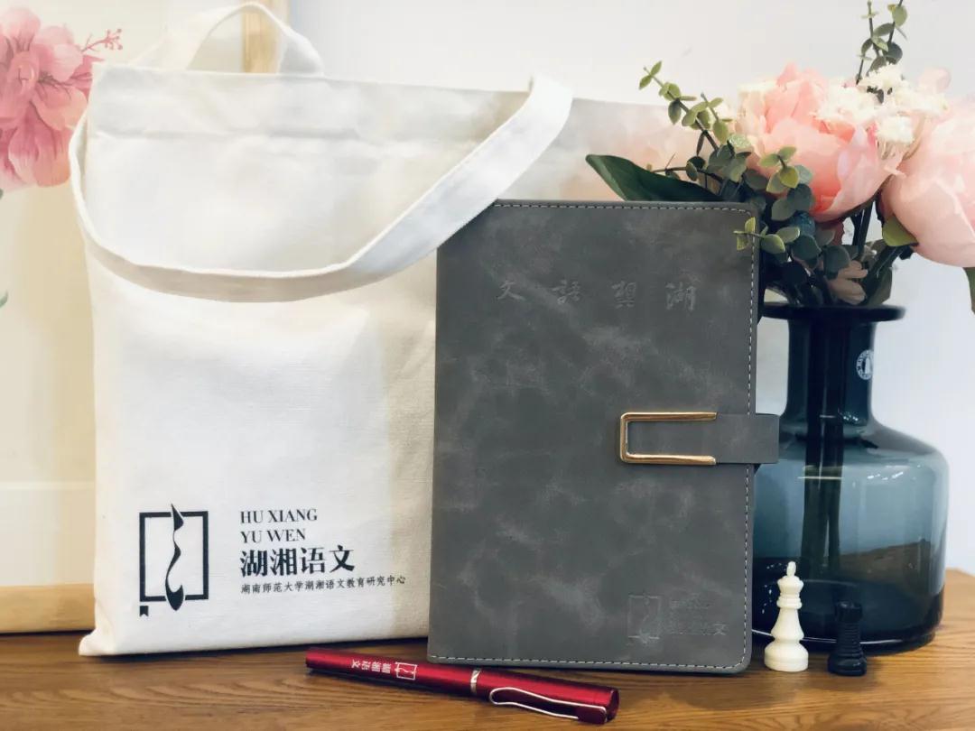 LOGO是灵魂,它为一切物品赋予精神。此次会议用的手提袋、本子、笔、会议手册,所有寻常物件都因为它成为湖湘语文的价值承载者与品牌代言人。因为它们,“湖湘语文”可能出现在熙攘的人群里,可能出现在教师的椅背或桌子一角,或是他正在写字的那支笔上。提醒存在,回忆存在,温暖存在。这里,特别要鸣谢朋友燕子的鼎力相助。她在最紧张的时间里,依然无偿地为我设计了所有物品、宣传册、喷绘、易拉宝。她是一个难得的优秀设计师。记得请她吃饭时,她告诉我:这一次的主题喷绘决不能再用水墨了,因为那已经泛滥。于是,这一次,在“湖湘语文,成就语文湖湘”的主题喷绘上,你看到的是那种隐约湘江水流一样的图案的浅紫红。