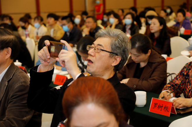 2020年10月15日,天空飘着寒意潇潇的秋雨。在长沙枫林宾馆三楼芙蓉厅,却又分明听得见那思想拨节、心灵绽放的浩荡声响。那是安静里的声响,又是热烈中的感奋。一个可以容纳两百六十人的会场,几乎座无虚席。领导、学者、专家、语文特级教师、正高级教师、名师工作室首席名师、中小学董事长、杂志主编、媒体记者……他们纷纷穿过城市灰色的雨云匆匆赶来,我们站在风里迎接着他们清晨的笑容。我相信,那一刻,在他们心里,湖湘,抑或语文,不再是普通的文字,而是彼此懂得的一串密码,彼此唤起的一束光亮。不,它们就是济济一堂的旧雨新朋,就是念兹在兹的麓山斯文。