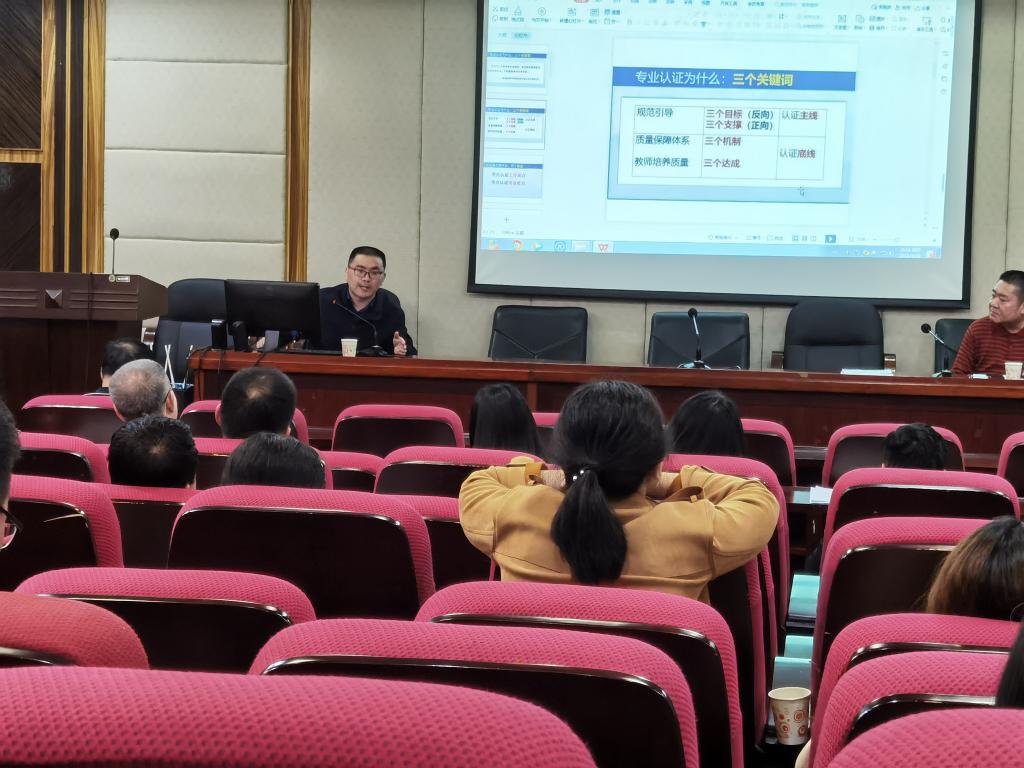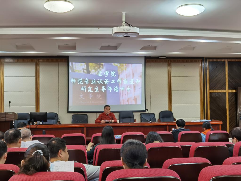 中文系主任吕双伟对与会老师就师范认证工作教师应知应会进行了专题培训。