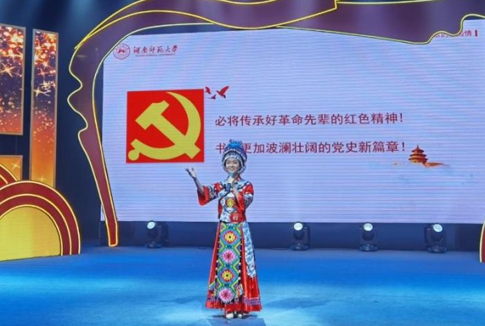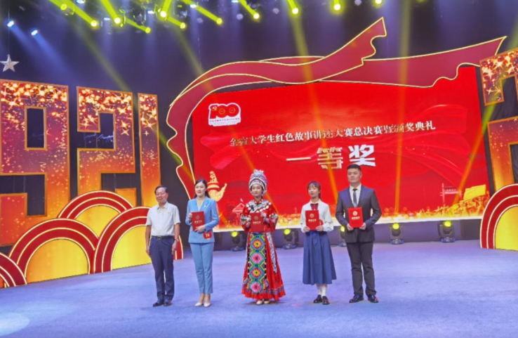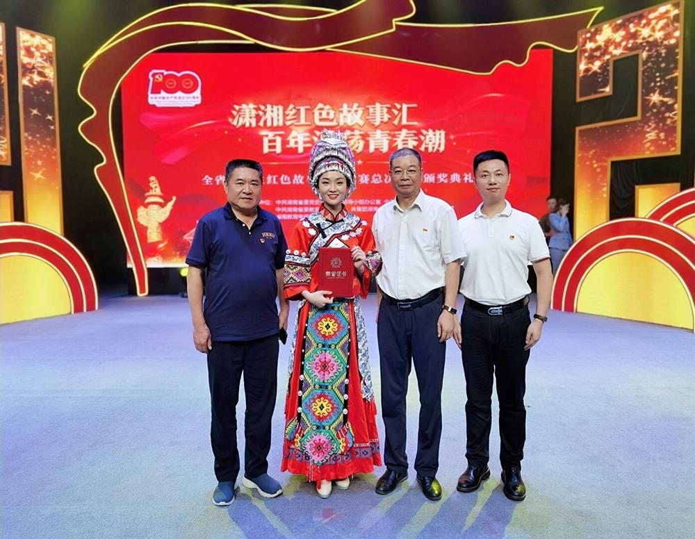 比赛现场,参赛选手们以湖湘革命先辈、开国将帅、英雄模范和在百年党史历程中具有重大影响的历史事件为基本素材,紧扣红色主题,从自身独特视角出发,讲述红色故事。公司william威廉亚洲硕士研究生江静雪第一位出场,以《一首湘西民歌的家国情》为题,深情讲述了湘西土家民歌《马桑树儿搭灯台》背后集思想性、故事性、教育性于一体的红色故事,生动诠释了在百年党史中中国共产党员的初心使命与家国情怀,感动了在场所有评委与观众,最终荣获全省最高奖。