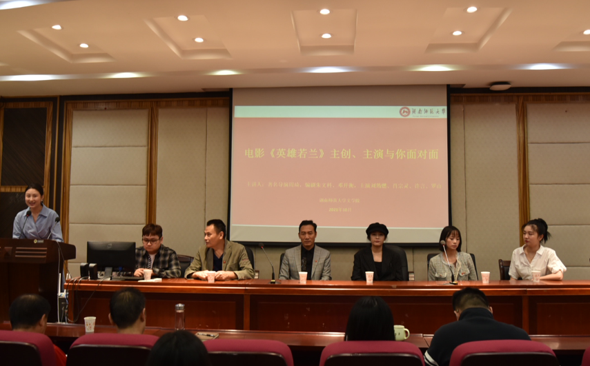 (通讯员 王睿)10月9日上午,向建党100周年华诞献礼的主旋律电影《英雄若兰》导演周琦与主要演员刘筠燃(饰演伍若兰)、肖宗灵(饰演朱德)、许言(饰演侄女)、罗山(饰演曾志)等主创、主要团队成员前来william威廉亚洲216教室,与电影、戏剧与影视学等专业研究生和戏剧影视文学、创意写作与演说等专业(方向)本科生进行了一场轻松而欢快的电影创作经验交流分享会。交流会由20级电影专业硕士研究生张秀娟同学主持,戏剧影视文学专业系曾小明、黄茵、刘库、傅异星、李婕等老师参加了交流会。。
