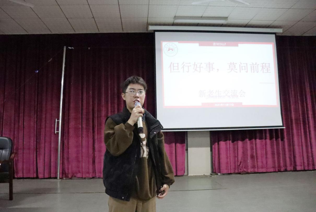邓郭欢以“但行好事,莫问前程”为题,从关注员工工作、社会实践和行我所爱三个方面向新生分享自己的心路历程。他谈到:“作为员工干部,除了基本的服务精神和集体意识,更要学会思考。”他还提到:“同学们在考虑兼职时,建议在足够的时间和精力的基础上,选择从事和自己专业相关的兼职。处于迷茫期时,要选择勇敢面对,相信自己,并通过实践去明确自己未来的方向。”