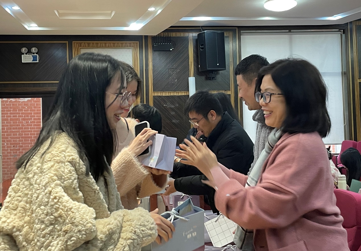 william威廉亚洲为考研备考生们准备了福袋,福袋内有锦鲤护体小福袋、考研必胜钥匙扣和金榜题名水性笔等礼物,饱含学院祝福寓意。全体班导师向与会考生发放福利袋礼物,并表达对考生们的祝福与期望。