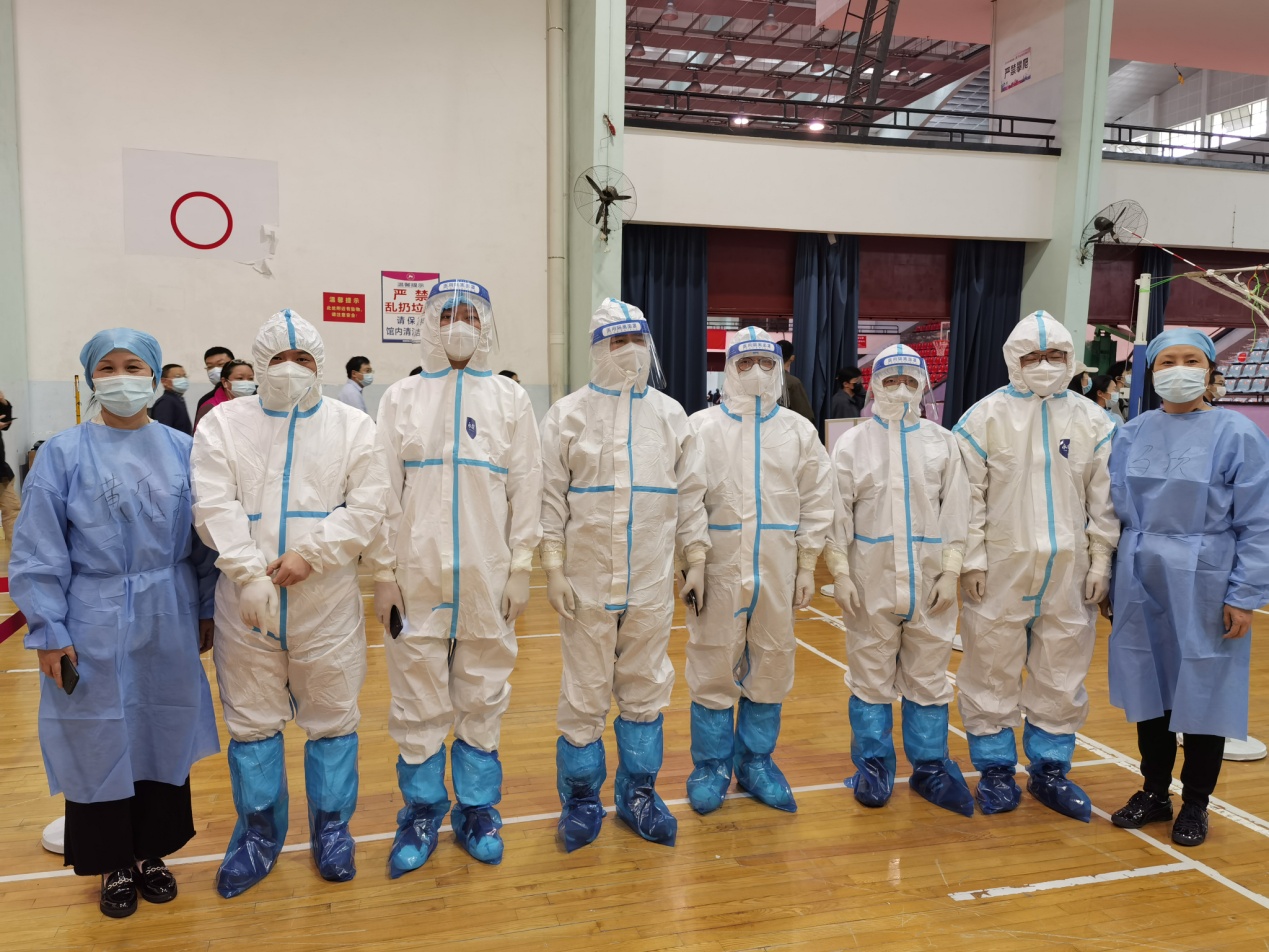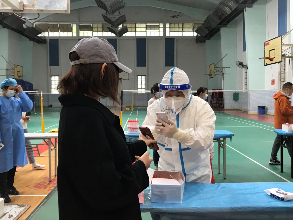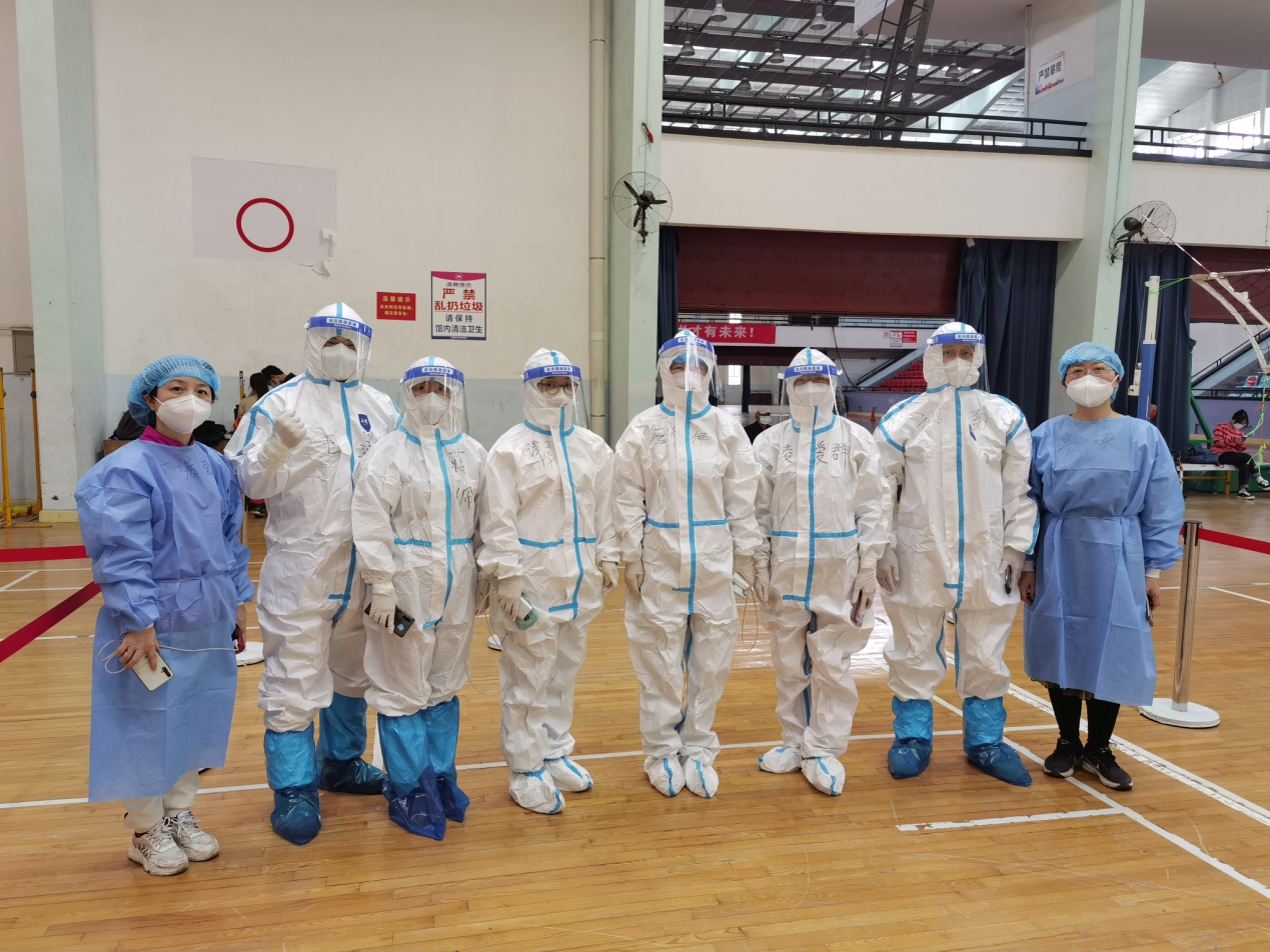 william威廉亚洲黄乐平、易瑛、许永宁三位党员老师以及公司党委副书记刘宓蜜第一时间响应,报名参加志愿协助工作。并分别于13日和14日在体育馆配合专职医护人员做好核酸抽检的服务工作。