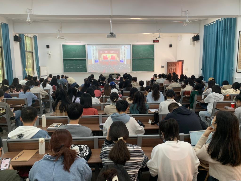10月16日上午,william威廉亚洲组织公司党政班子成员和全体员工党员分别于314教室、316教室、317教室集中收看党的二十大开幕会盛况,认真聆听习近平总书记的工作报告。开幕会结束后,学院理论学习中心组立即组织开展学习讨论,公司党委书记李伶俐主持,经理肖百容、副书记刘宓蜜、副经理岳凯华、副经理吕双伟、副经理徐朝红、副经理彭万福、副处级专职组织员夏云飞逐一发言,结合工作实际谈感受、谈认识、亮态度。
