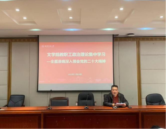 李伶俐书记组织学习了《中共中央关于认真学习宣传贯彻党的二十大精神的决定》,要求全院教职工要将学习领会党的二十大精神作为当前和今后一段时间内首要的政治任务,联系教书育人工作实际抓紧学、认真学、反复学,坚持个人自学和集中学习相结合,既要整体把握、全面系统,又要突出重点、抓住关键,真正入脑入心入行。落实党中央“九个深刻领会”,“七个聚焦”要求,准确把握“七个伟大”的高度概括。深刻领悟“两个维护”的决定性意义,增强“四个意识”、坚定“四个自信”、做到“两个维护”,不断提高人才培养质量,落实立德树人根本目标,以教书育人和课程思政建设实际成效促进学院的建设和发展。
