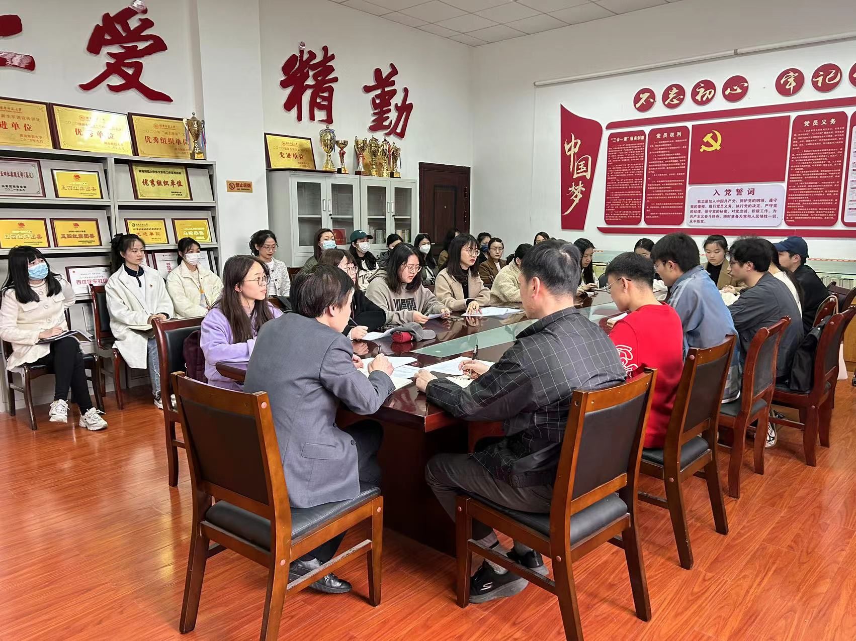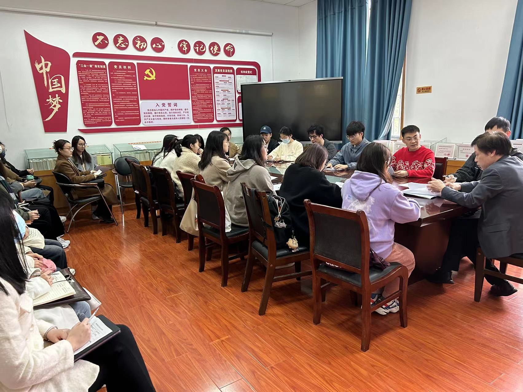与会人员还针对发展党员的相关时间节点、指导填写党员相关材料时遇到的问题进行了交流和讨论。