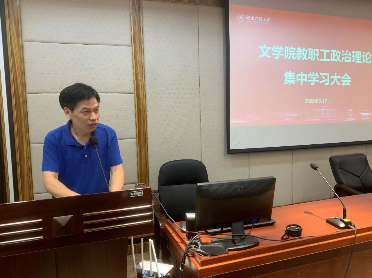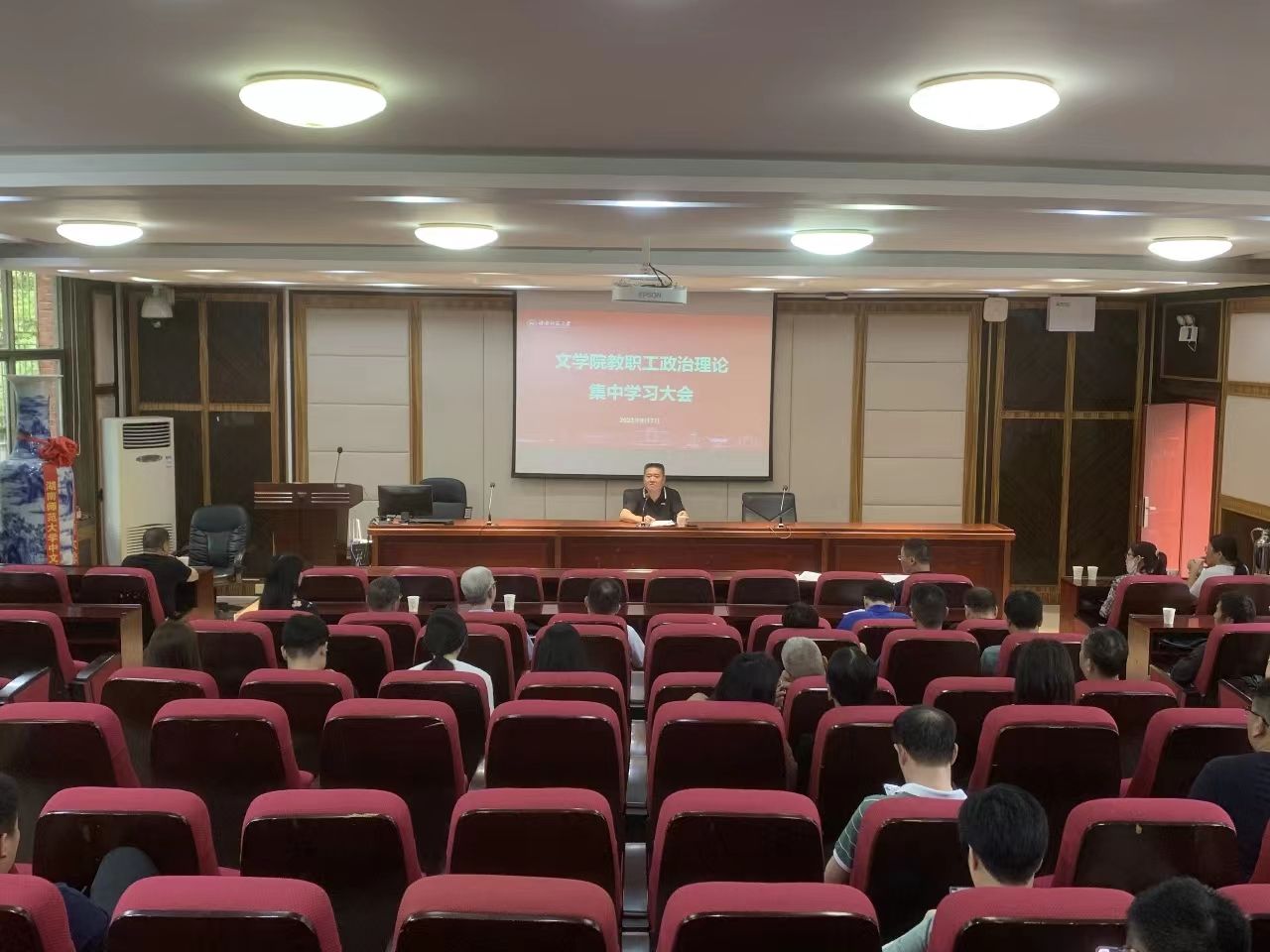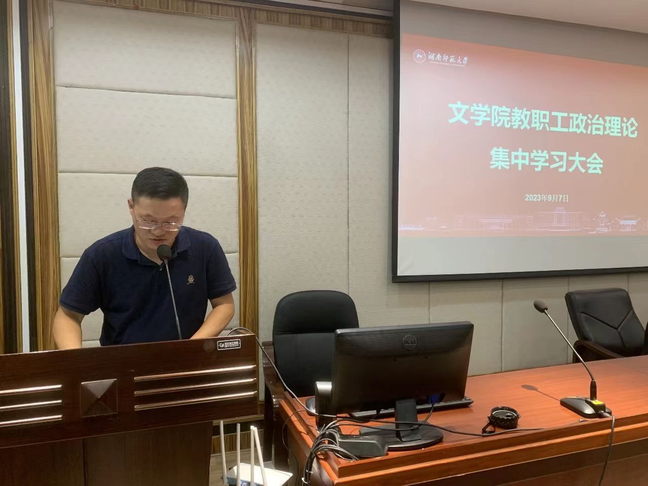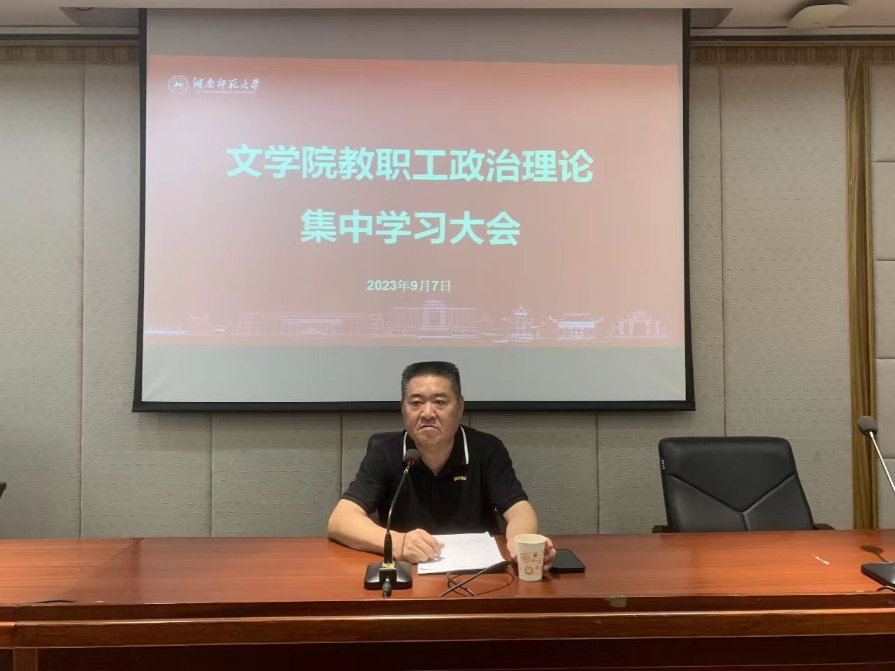2023年9月7日下午,学院在216报告厅召开教职工集中政治学习大会,深入学习湖南省委十二届四次全会精神,会议由公司党委书记李伶俐主持。