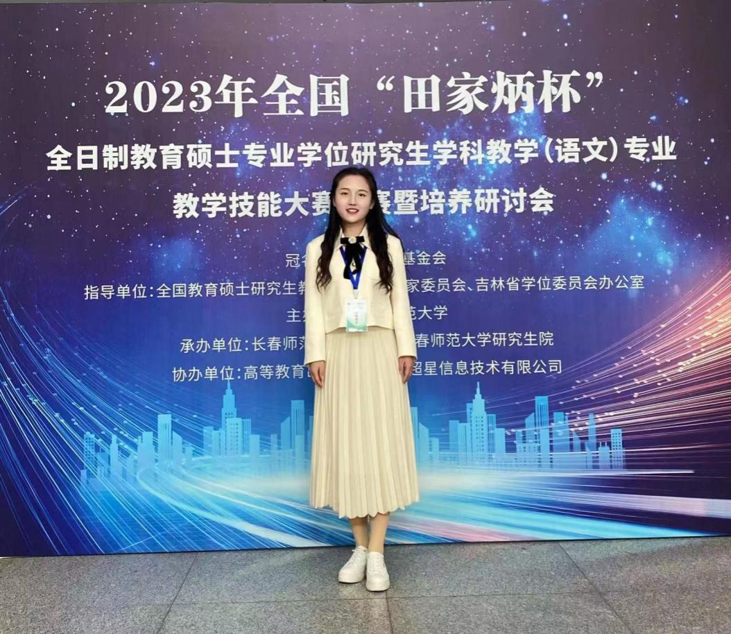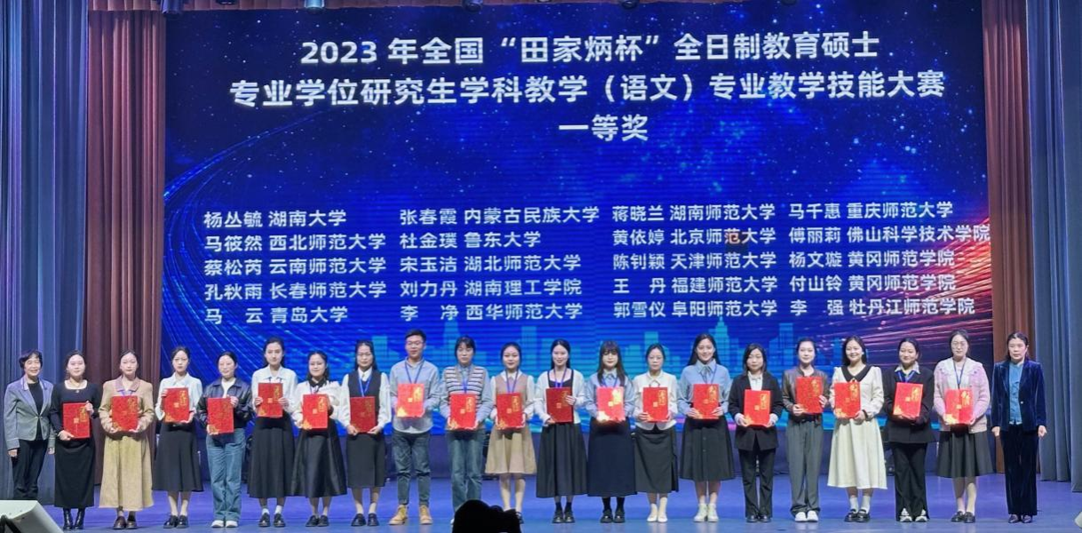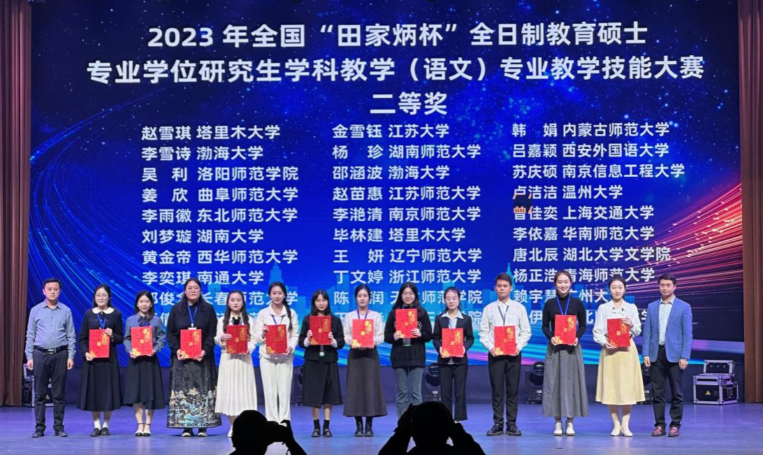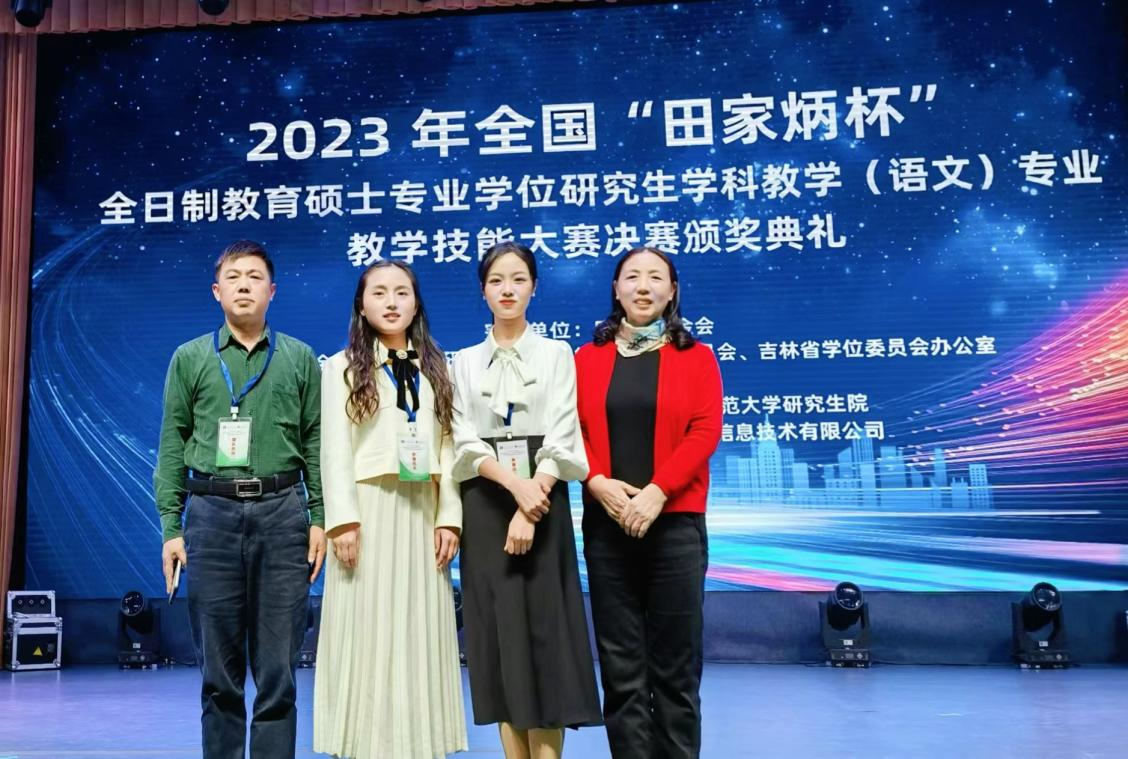 (通讯员蒋晓兰)10月15日,2023年全国“田家炳杯”全日制教育硕士专业学位研究生学科教学(语文)专业教学技能大赛决赛在长春师范大学圆满落幕,公司2022级学科教学(语文)研究生脱颖而出,成绩名列全国高校前茅,蒋晓兰荣获一等奖,杨珍荣获二等奖,刘光成荣获优秀指导教师奖。这是公司学科教学(语文)研究生在全国赛事中取得的又一次荣誉。