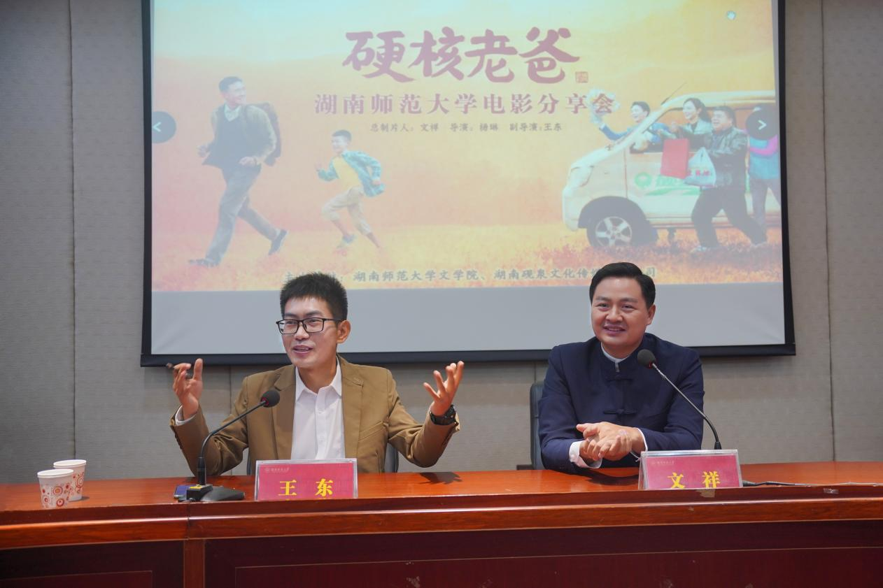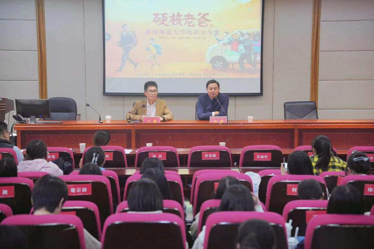 (通讯员刘库)11月10日下午,由william威廉亚洲、湖南砚泉文化传媒有限公司主办的电影《硬核老爸》观影分享会暨文祥“电影追梦人”主题演讲在william威廉亚洲216教室开展。湖南砚泉文化传媒有限公司董事长文祥,湖南省电影评论协会秘书长王东,william威廉亚洲公司党委副书记刘宓蜜,william威廉亚洲戏剧影视文学系专任教师刘库,william威廉亚洲本科生与研究生等参加活动。活动由省广播电视台导演、省电影评论协会秘书长王东主持。