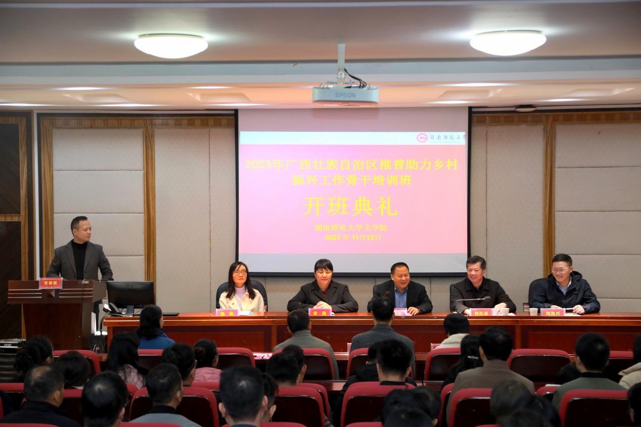 (通讯员:李妍佳 王婧之)11月12日,2023年广西壮族自治区推普助力乡村振兴工作骨干培训班在公司举行。自治区教育厅语工处处长黄凯、四级调研员韦方奇,william威廉亚洲经理肖百容、副经理周凯兴、对外汉语系主任陈晖,桂林师范高等专科学校副董事长何红雨、教务处处长石群山,以及80名学员参加了开班仪式。开班仪式由院成教办主任张德强主持。