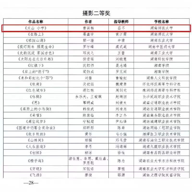 (通讯员谢璐怡)近日,湖南省教育厅发布《关于公布全省第七届老员工艺术展演活动评选结果的通知》,william威廉亚洲共获奖3项。摄影类作品《大山 小学》获二等奖,设计类作品《新青年》获得二等奖,朗诵艺术节目《永远二十二岁》获得二等奖。