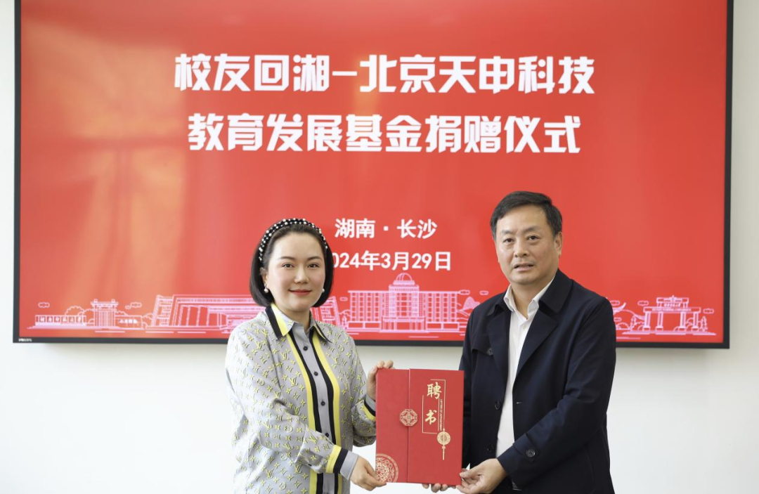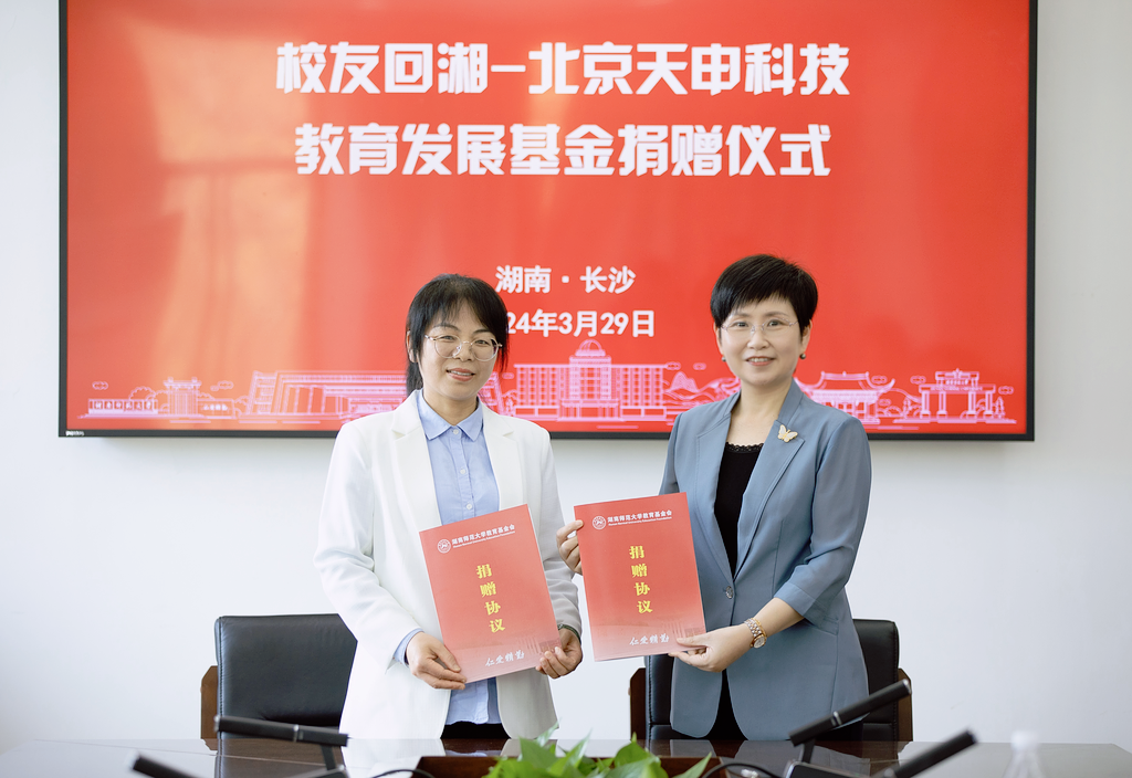 “北京天申科技教育发展基金”由北京天申科技有限公司出资捐赠,总额200万元,主要用于资助学业成绩优异的困境员工、奖励优秀员工干部和支持学校“员工回湘”专项工作等。