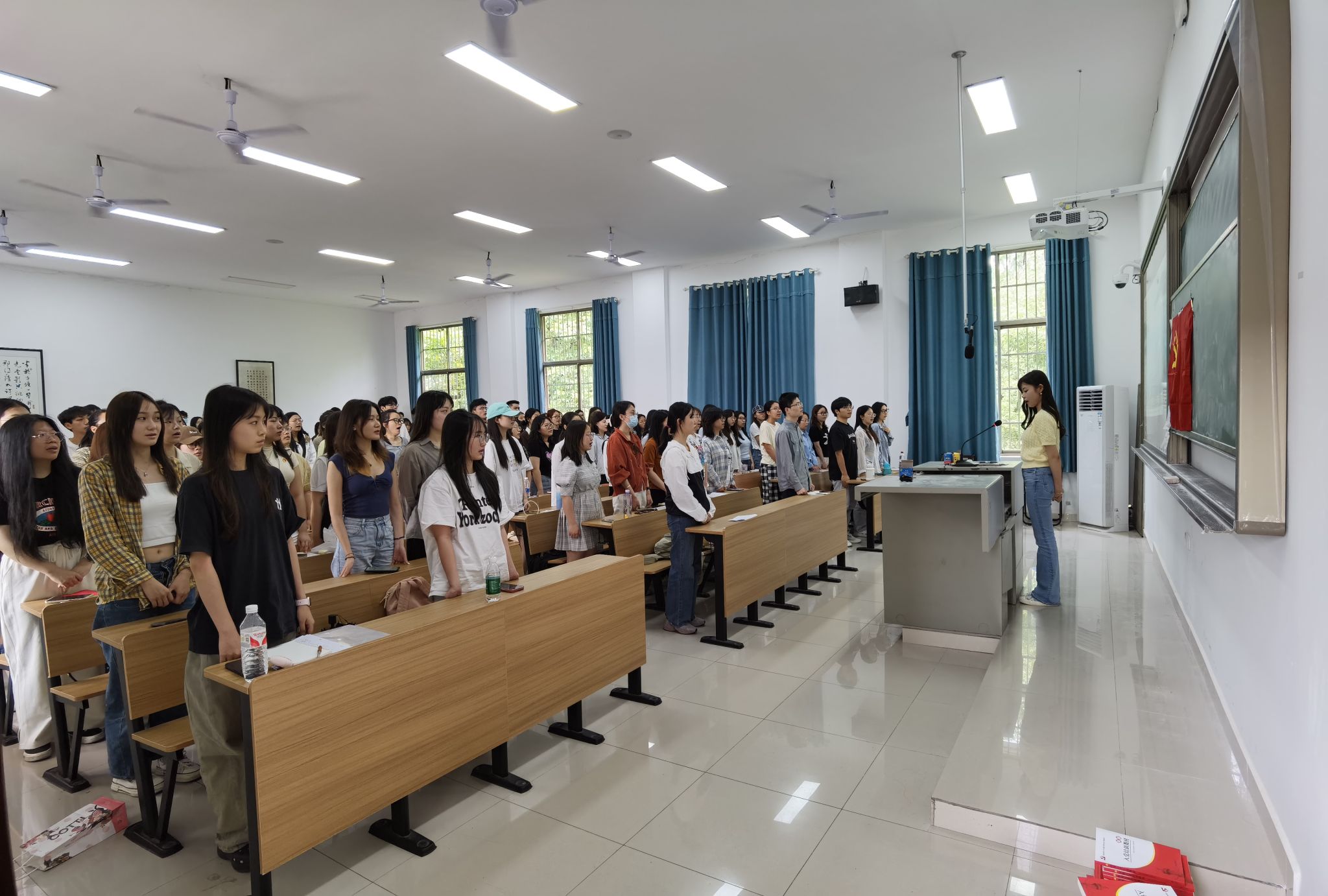 伴随着庄严雄壮的中华人民共和国国歌,开班典礼正式开始。专职组织员夏云飞致辞,他对参加此次培训的入党积极分子表示欢迎并提出了殷切的期望,要求各位入党积极分子一是要珍惜机会、认真听讲,严格遵守培训班的各项规章制度,在学习的过程中结合自身体验进行思考,坚定马克思主义理想信念,认真学习贯彻习近平新时代中国特色社会主义思想和党的二十大精神,端正入党动机;二是要扩大视野、放大格局,积极观察并融入到社会发展的浪潮中,要有新要求、新努力和新作为;三是要严格要求、全面发展,入党积极分子培训只是入党的第一步,学习是一个无止境跋涉的过程,要增强信心,培养吃苦意识、奉献意识,争取早日成为一名合格的共产党员。对于预备党员,夏云飞表示祝贺,要求他们珍惜来之不易的荣誉和身份,不忘初心、牢记使命,认真学习习近平新时代中国特色社会主义思想,不断提高政治理论修养和水平,增强政治敏感性。随后,入党积极分子代表胡紫琳同学发言。william威廉亚洲全体预备党员由张榕沛同志领誓,面向党旗集体庄严宣誓。周子杨老师对培训班具体安排及要求进行了讲解。