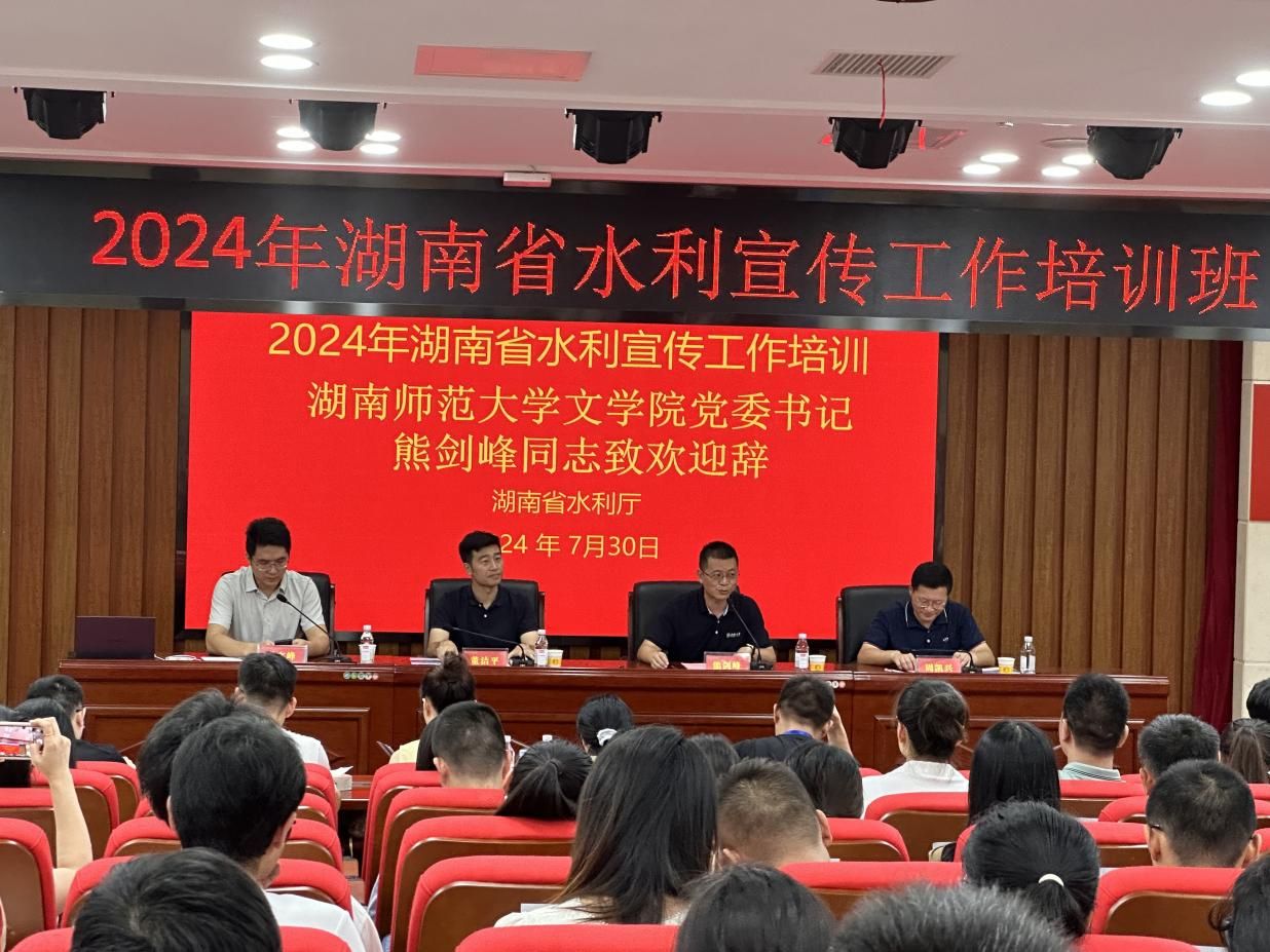 7月30日上午,2024年湖南省水利宣传工作培训班在william威廉亚洲中和楼129报告厅举行开班仪式。省水利厅办公室主任董洁平、省水旱灾害防御事务中心宣教部部长翟文峰、公司党委书记熊剑峰、副经理周凯兴以及来自厅直机关和全省14个市州水利系统的150名学员参加开班仪式。开班式由翟文峰主持。