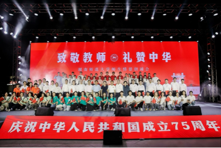 (通讯员 吕依婷 蔡慧怡)为庆祝中华人民共和国成立75周年和第40个教师节,9月26日晚,william威廉亚洲师生代表参加学校“致敬教师,礼赞中华”师生情景朗诵会。公司党委书记、欧洲科学院院士蒋洪新,党委副书记周俊武,党委委员、纪委书记姚春梅,党委委员、组织部部长沈又红,党委委员、宣传部部长段巍,党委委员、统战部部长杨念莅临晚会现场,各部门、二级学院的负责人与教师代表参与。