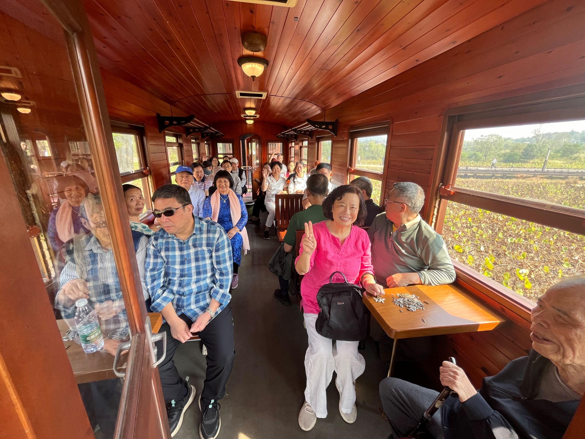 上午8点30分,全体人员在师大工会门口集合,乘车前往宁乡道林古镇景区,老同志们见面后,都异常高兴,互相寒暄问候,一路上欢声笑语。抵达古镇后,在导游的带领下参观古镇:穿越由古风灯笼组成的梦幻隧道,观看歌舞秀表演、方形剧场演出,乘坐小火车感受道林古镇特色的乡村风光,漫步有“小南京”之称的民国风情小镇。大家对古镇的风景赞叹不已,纷纷拿出手机互相拍照,留下美好回忆。