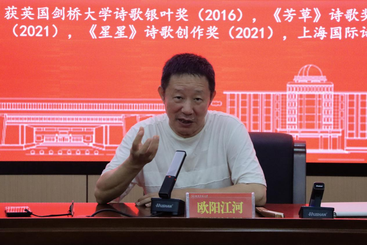 图为欧阳江河开展讲座
