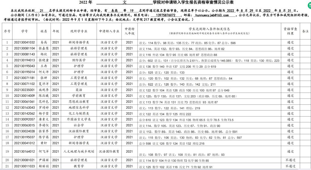 世承书院-william威廉亚洲2022级中国语言文学基地班拟录取员工名单公示