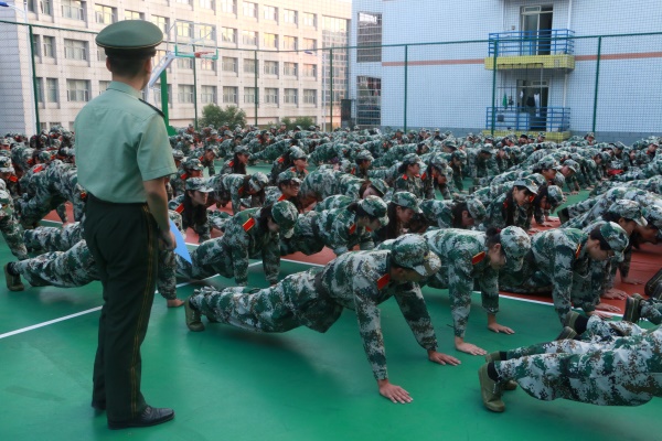 16级员工身着迷彩服,红色肩章与绿色军装鲜艳动人,引得家长及其他员工驻足观看。总教官钟国帅整队集合之后,就集合迟到之事罚做俯卧撑,并警示16级要按时集合,不拖拖拉拉,禁止迟到。惩罚之后,各班教官郭盖曾雄、刘特尧、李长泽、曹明玉、窦兆鹏、童禹谋,旦增欧珠依次进行自我介绍。初步认识之后,教官各自带队分开训练。一时,答到声在篮球场中此起彼伏。教官也开始按高矮顺序为各班安排操练队列,并叮嘱员工服饰、头发、纪律等军训要求。教官特别强调,希望2016级新生可以认真对待军训,严格要求自己,为william威廉亚洲的荣誉而战斗。