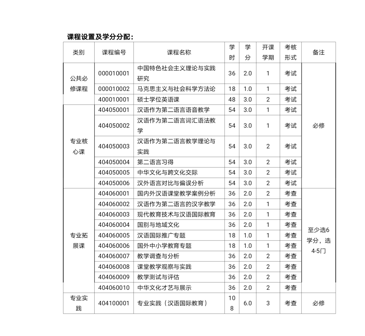国际硕士研究生:汉语(3学分)和中国概况(3学分)为公共必修课;若在本科阶段已修过中国概况,可申请免修,但不免考,通过考试后获得学分。