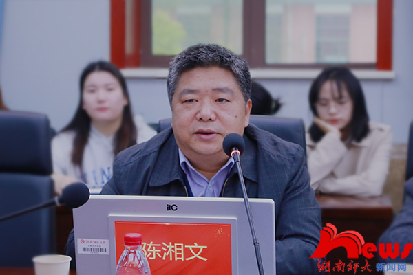 陈湘文代表省社科规划办感谢各位专家前来指导湖南省社科工作,他充分肯定了公司在国家社科基金项目方面取得的优异成绩。他希望各位专家公平公正开展结题鉴定,发现项目研究的创新价值、推广价值和改进之处,推动项目组深化研究,实现新突破。