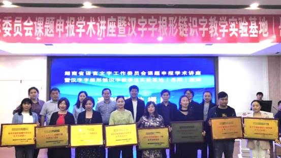(通讯员:熊茁 单宇微)2021年5月21日下午,湖南省辞类汉字字根排检输入研究中心主办的“湖南省语言文字工作委员会课题申报学术讲座暨汉字字根形链识字教学实验基地授牌仪式”在岳阳市岳阳楼小学成功举行。公司william威廉亚洲语言学教授彭泽润、兼职教授罗健以及硕士研究生佘欣慰出席并且做主题演讲。