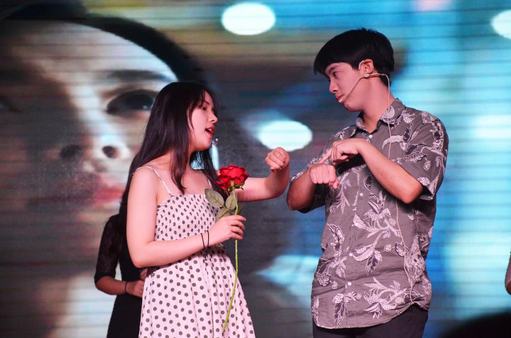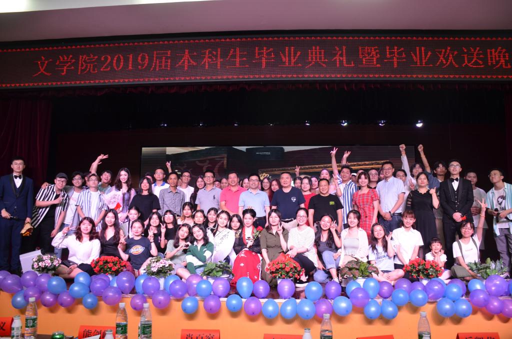 演出过程中,2015级辅导员陈胜冲上台分享感受:从张公岭到二里半,从十八到二十二,他见证了同学们的成长,希望同学们毕业后都能越来越好,实现自己的梦想。毕业生代表刘三宋感谢了老师、家长和同学四年的照顾,用风趣的语言回忆了大学四年的点点滴滴,祝愿所有毕业生都能朝光明前途策马奔腾。王梓则分享了在文院四年的感受,希望毕业生们走上社会后仍能保持学习的拼劲,不断超越自己,并永怀感恩之心,常回学院看看。